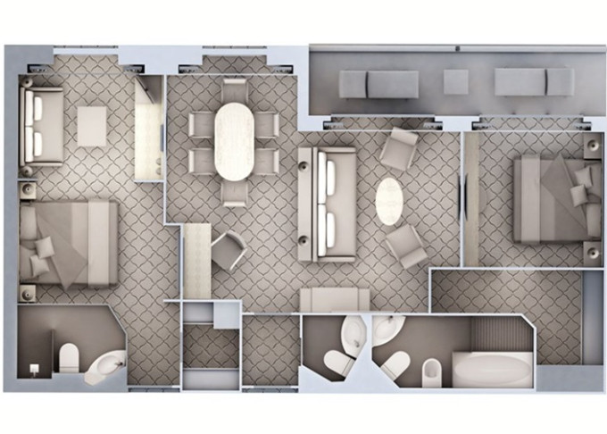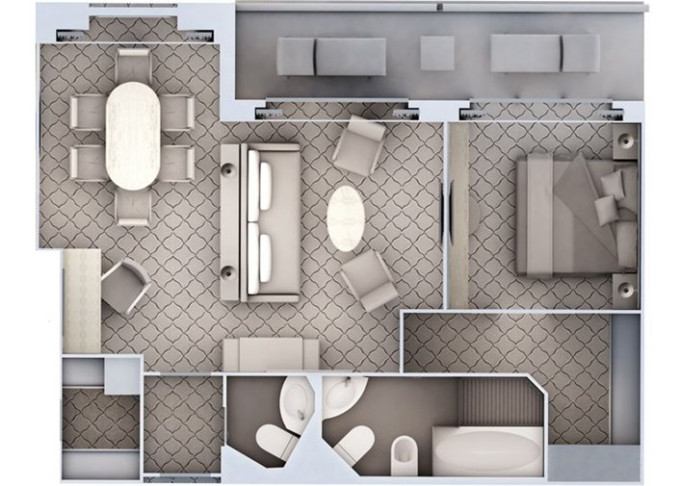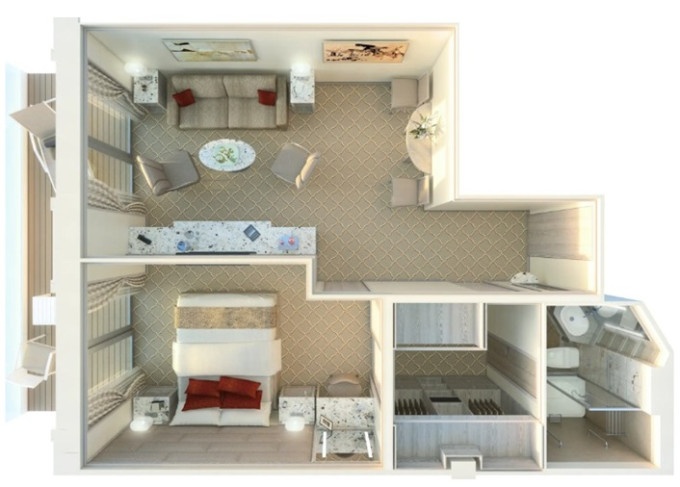 | R2 - Royal Suite 2 79,5 m² + balkóny 16,5 m. Royal Suite R1 spojená s Veranda Suite. 6. paluba - vpredu. Max 5 osôb. | 94 000 € 47 000 € za osobu |