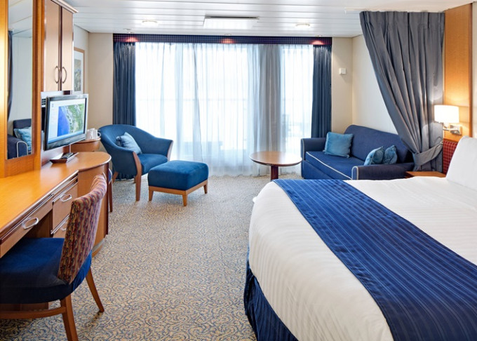 1K - Veľká vonkajšia kajuta Ultra Spacious 24,5 m². Neotvárateľné okno. 7/8. paluba. Oddelená časť s poschodovou posteľou. Max 5-6 osôb. 3 277 € 3 277 € za osobu