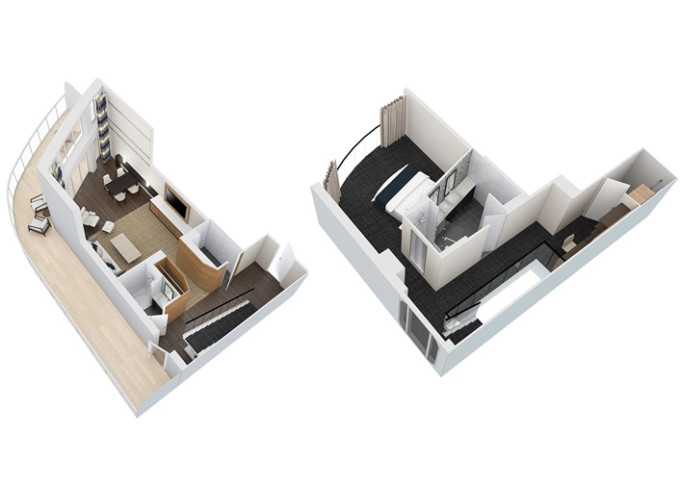 | GT - Grand Suite s balkónom / 2 spállne 50 m² + balkón 24 m². 2 spálne, 2 kúpeľne. Výhody Royal Suite Sky Class. | 4 932 € 1 644 € za osobu | ||