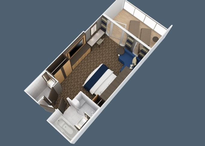 | 2U - Vnútorná kajuta s virtuálnym balkónom 15 m². Obrazovka veľkosti balkónových dverí s premietaným výhľadom. Centrálne umiestnenie. Max 2 osoby. | 982 € 491 € za osobu | ||