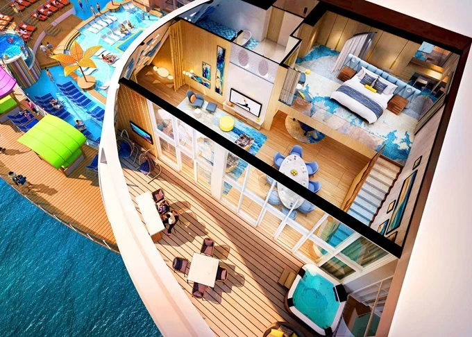 | RL - Royal Loft Suite 141 m² + balkón s vírivkou 78 m². 2-podlažný apartmán. 18. paluba. Max 6 osôb. Výhody Royal Suite Star Class. | 8 994 € 4 497 € za osobu |